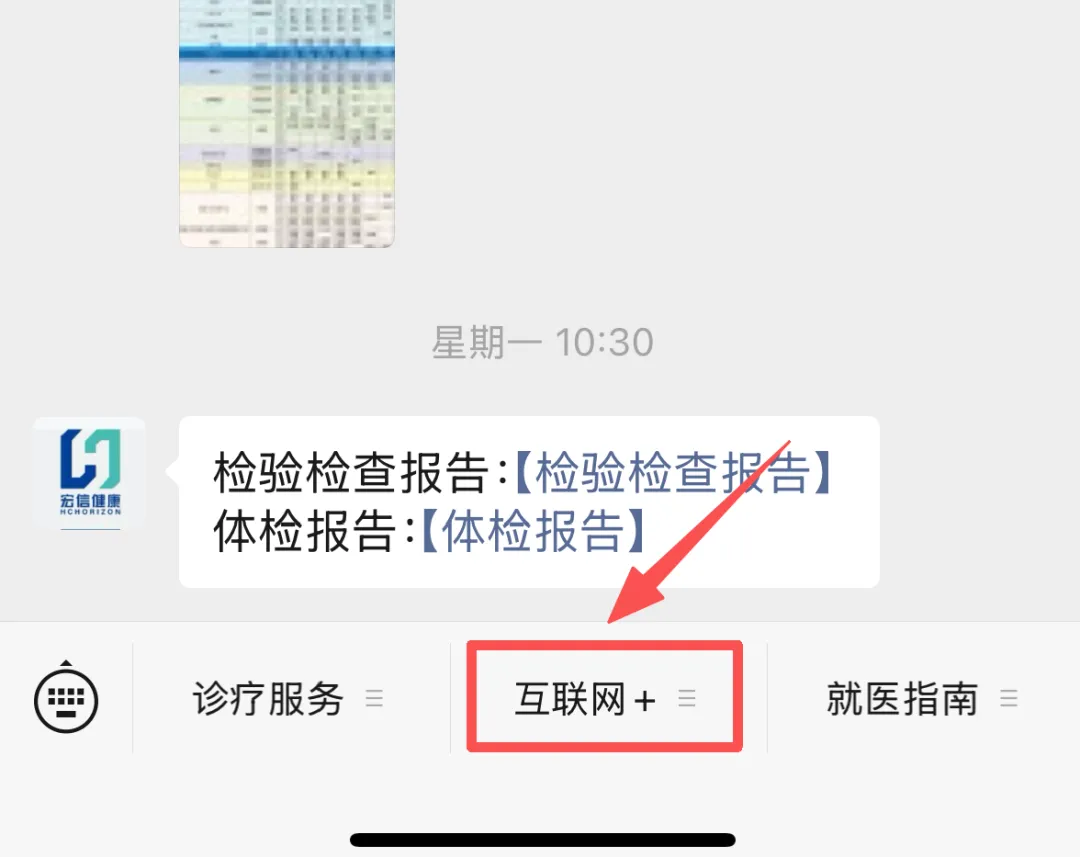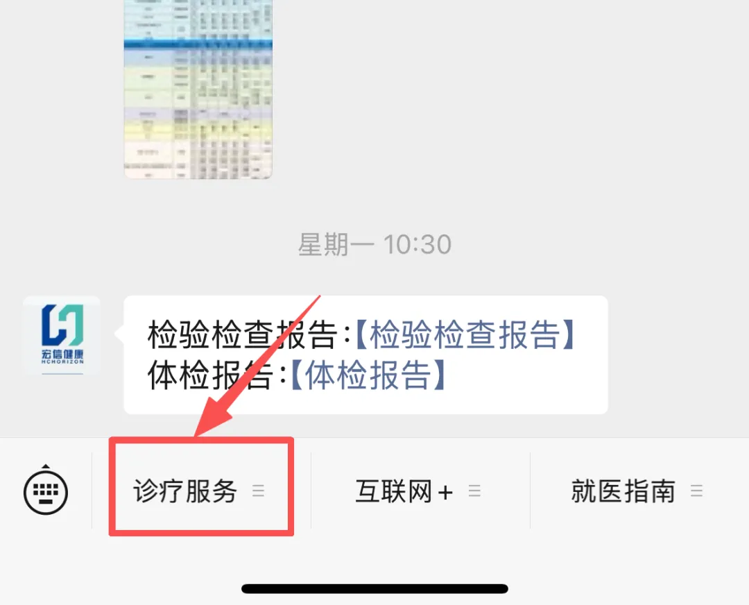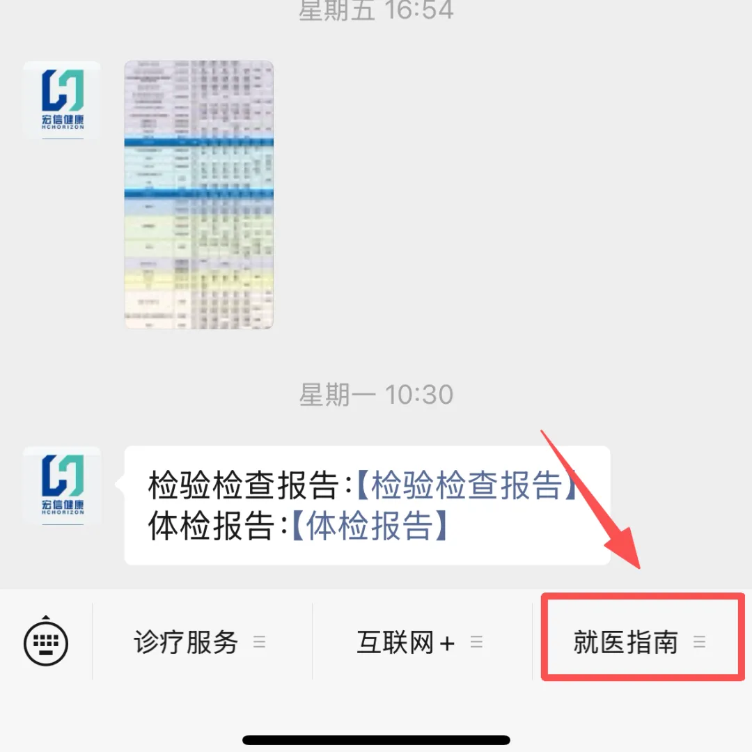 4.报告查询:点击报告查询后,会收到检查检验报告、体检报告以及云胶片的消息,点击相应报告文字都能直接跳便捷查看;