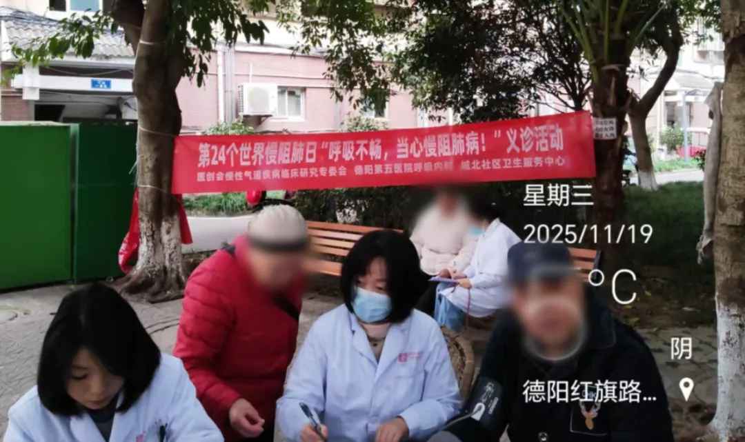 2025年11月19日上午,德阳第五医院呼吸内科携手城北社区卫生服务中心,在红旗社区举办了以“呼吸不顺畅,当心慢阻肺”为主题的健康宣教义诊活动。此次活动旨在提升公众对慢阻肺病的认知与重视程度,呼吁全社会关注这一“沉默的杀手”。