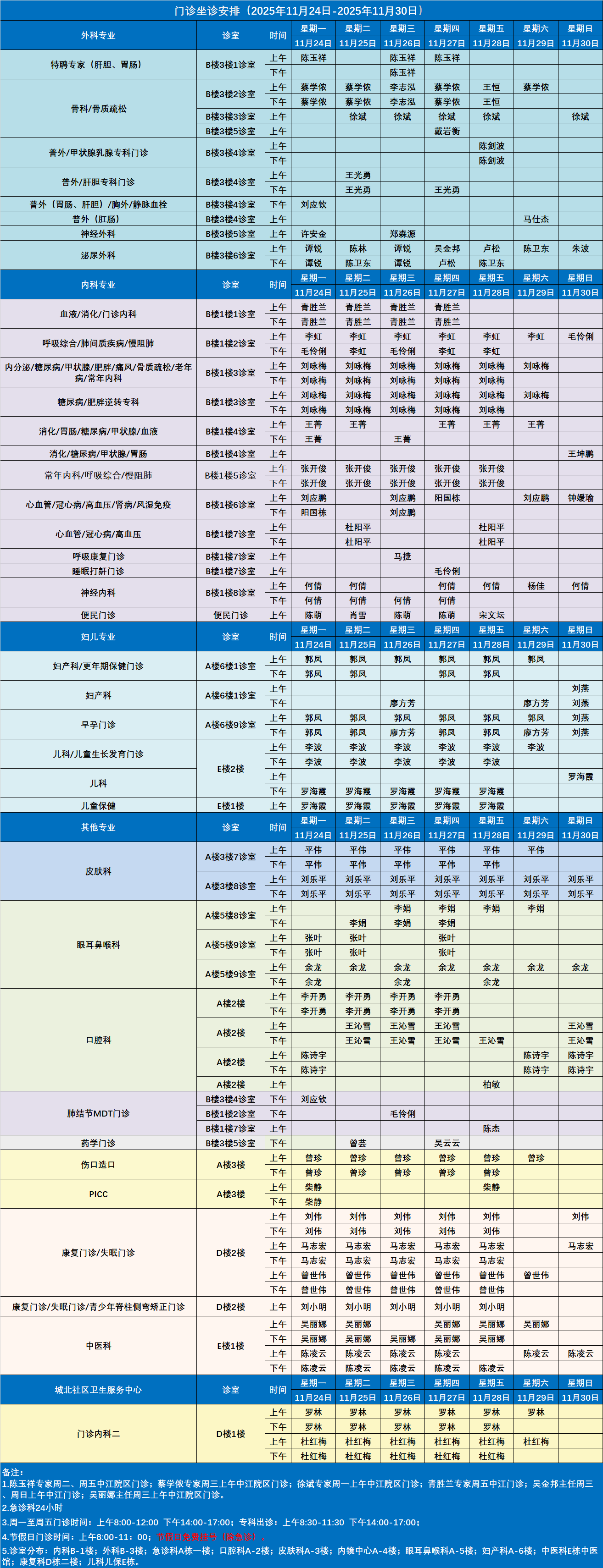门诊医生坐诊表